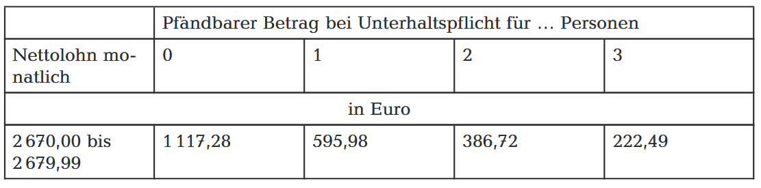 <absatz>Pfändbarer Betrag bei Unterhaltspflicht für … Personen</absatz>