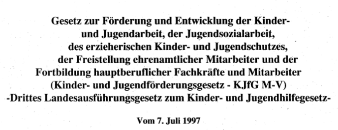 <titel.lang>Gesetz zur Förderung und Entwicklung der Kinder- und Jugendarbeit, der Jugendsozialarbeit, des erzieherischen Kinder- und Jugendschutzes, der Freistellung ehrenamtlicher Mitarbeiter und der Fortbildung hauptberuflicher Fachkräfte und Mitarbeiter – Drittes Landesausführungsgesetz zum Kinder- und Jugendhilfegesetz –<titel.lang>
