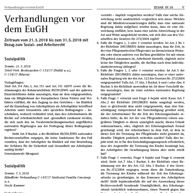 <schluesselzeile>Termin: 21.3.2018<zeilenumbruch/>Urteil Verb. Rechtssachen C-133/17 (Podila u.a.), C-134/17 (Mucea)</schluesselzeile>